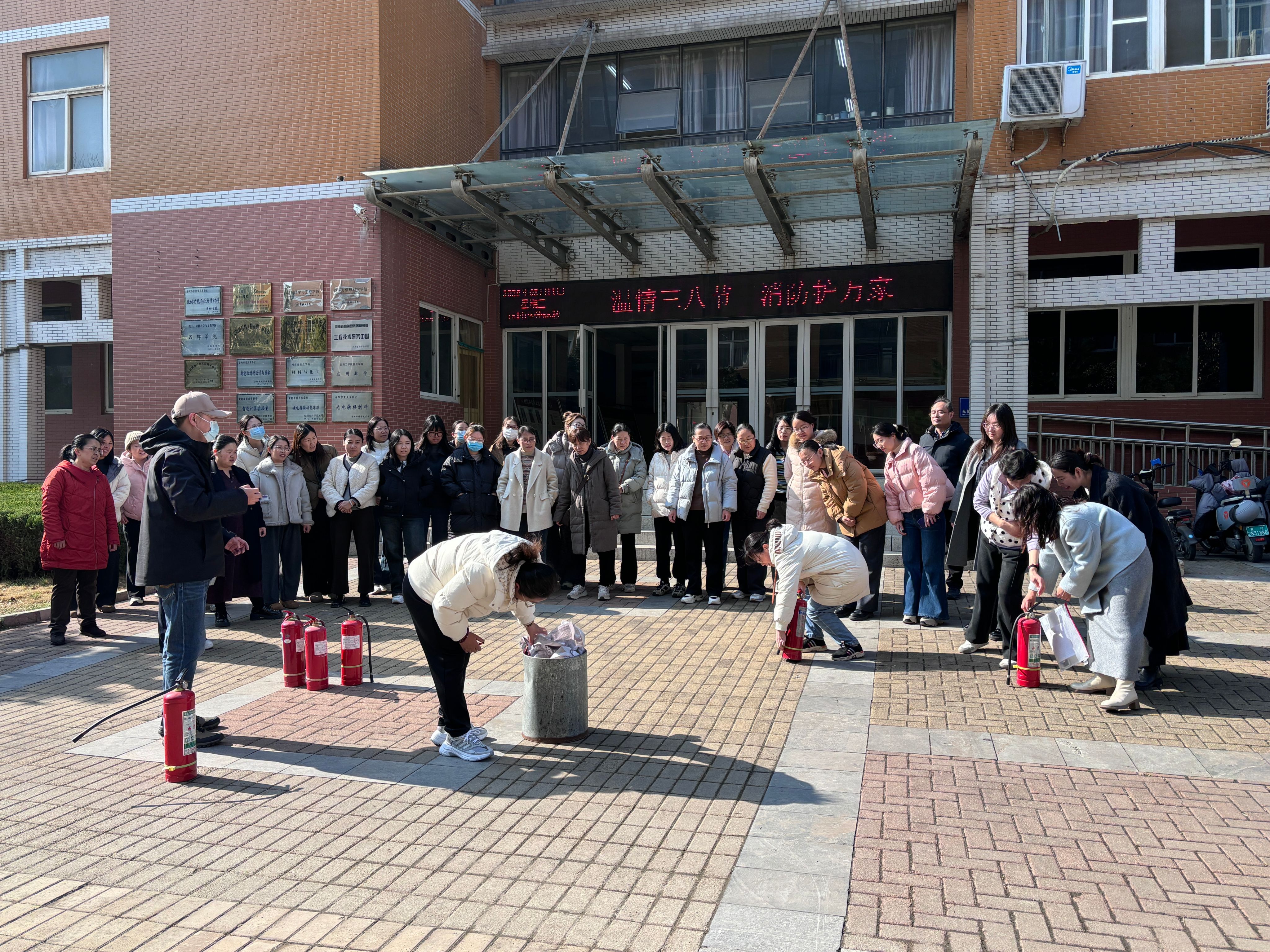 2026年3月11日下午,数信学院分工会在A14-204会议室及楼下空旷实操区域开展“温情三八节,消防护万家”主题消防安全实操活动,学院全体女职工参与。